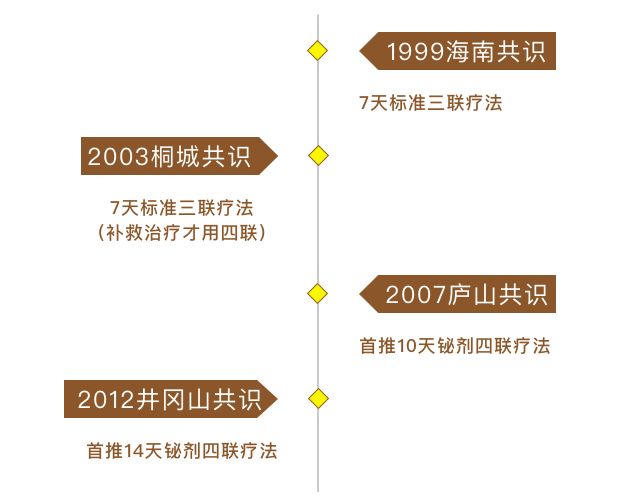 从共识的变化也可以看出,在根除幽门螺杆菌方面,三联变成了四联,疗程逐渐增长,药物副作用也随之增加。