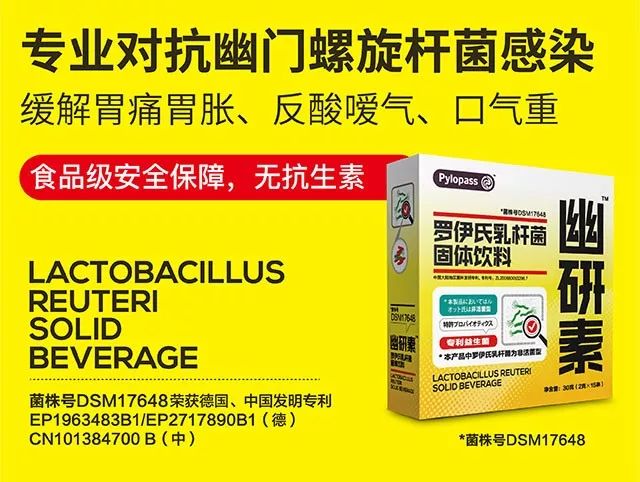 2017年,Pylopass™远渡重洋来到中国,以幽研素®罗伊氏乳杆菌固体饮料的姿态,为中国幽门螺杆菌感染者及其家人,提供一种防幽抗幽的全新方法。