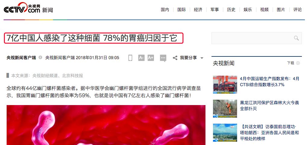 我国幽门螺杆菌的感染率高达50%,但是由于幽门螺杆菌感染没有明显症状,很多人多会忽视,直到把小病养成了大病,甚至到胃癌才有所警觉。