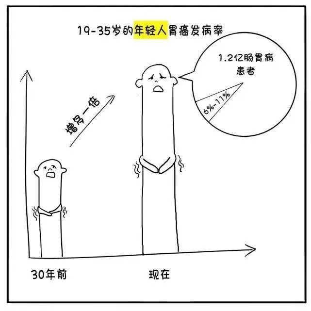 更麻烦的是,近5年来,我国19-35岁青年人的胃癌发病率比30年前翻了一番。
