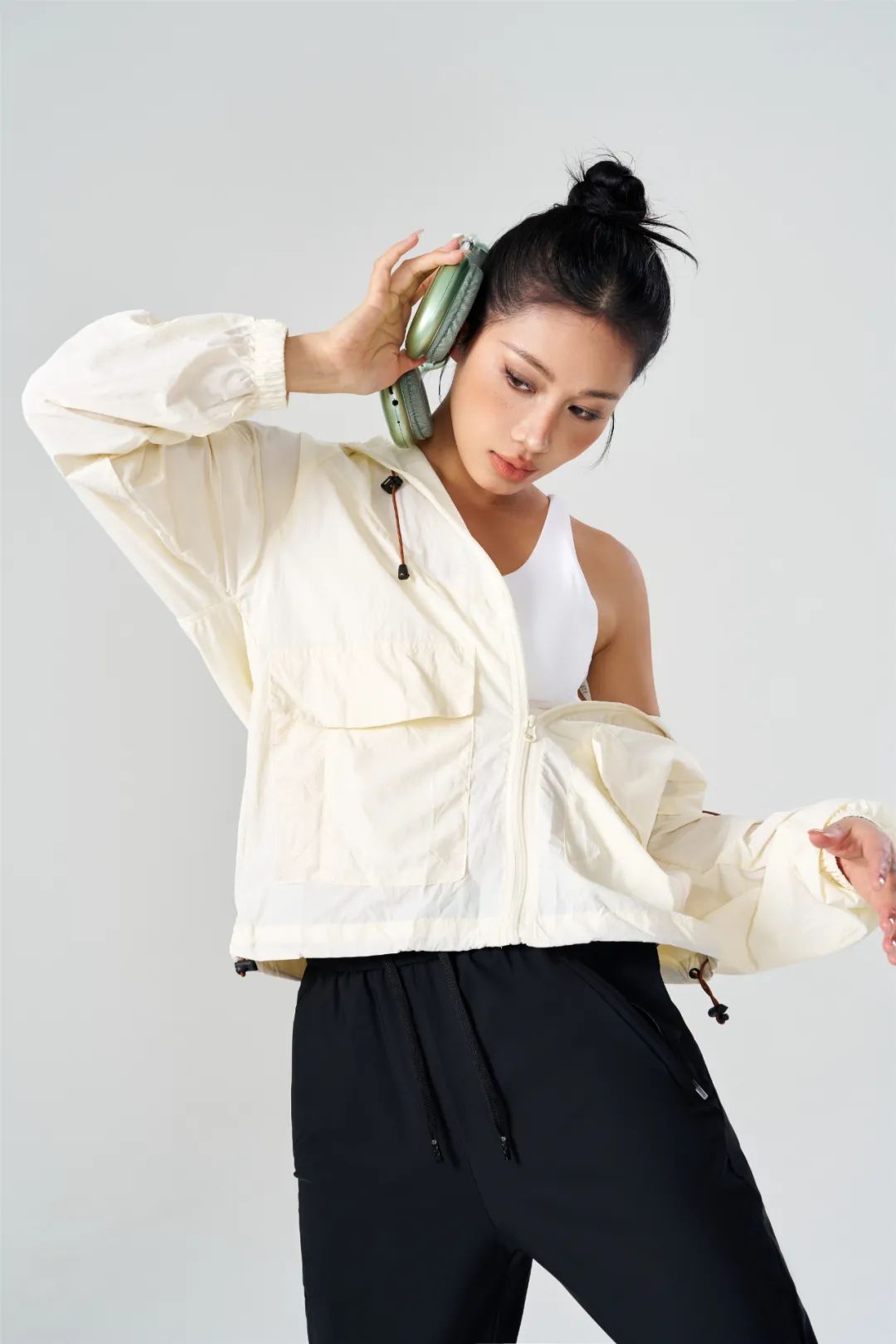 它专为户外设计,虽然薄薄一层面料,但蕴含了多种科技,既适合户外运动,也适合城市日常穿着~
