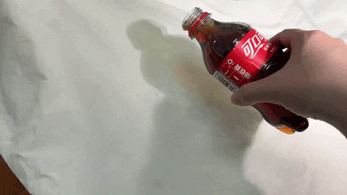 不仅是水,像果汁、可乐这种黏糊的饮料倒在上面同样会滑落▽