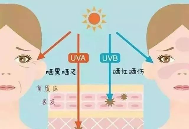 UVB:损害真皮层,穿透力强,肌肤晒红、脱皮、晒伤。