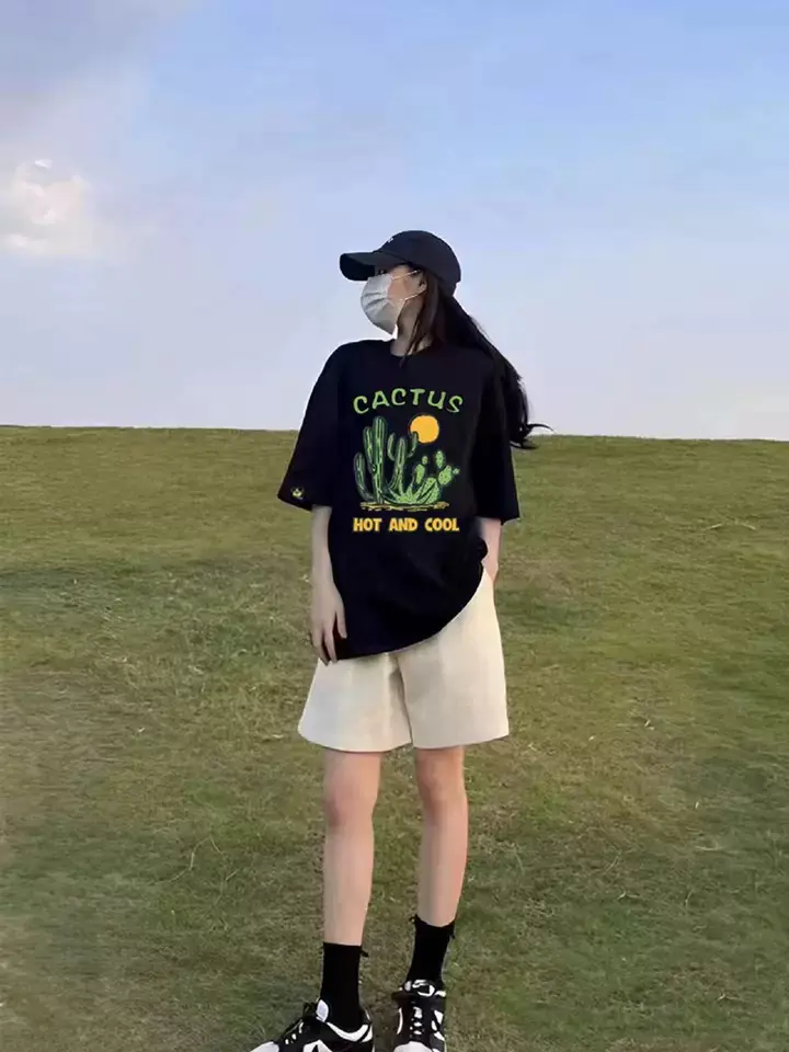 出门随便搭件简约T恤&外套,脚踩运动鞋,轻松又自在,慵懒感直接拉满!