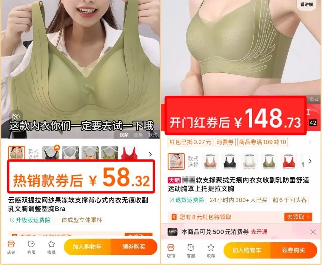 某宝上随便一搜,同款剪裁、面料的内衣一件少说50+。