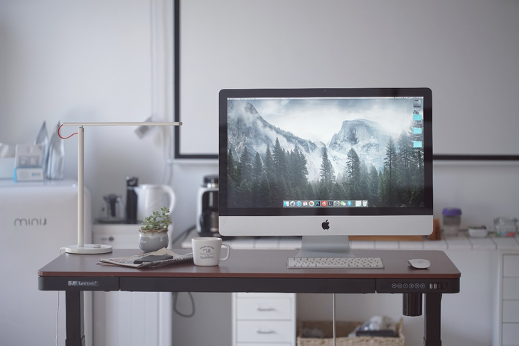 我之前的桌面产品现在在用的就是一个iMac、台灯和一些小道具,这样一款颇有设计特色的电脑产品摆放在这款桌面之上,毫无违和感。
