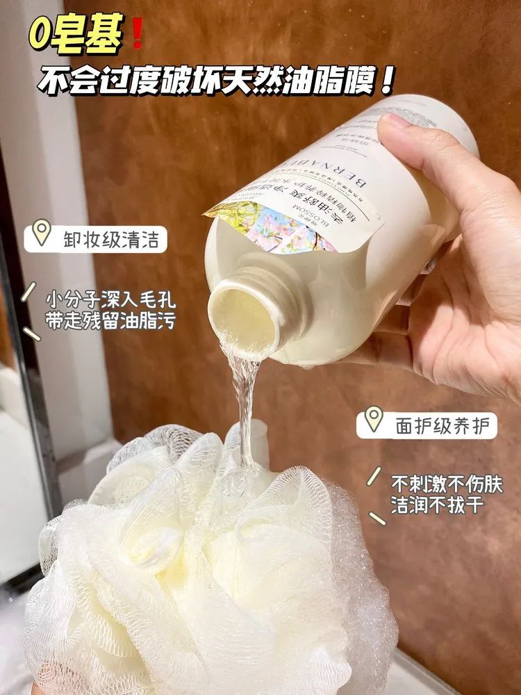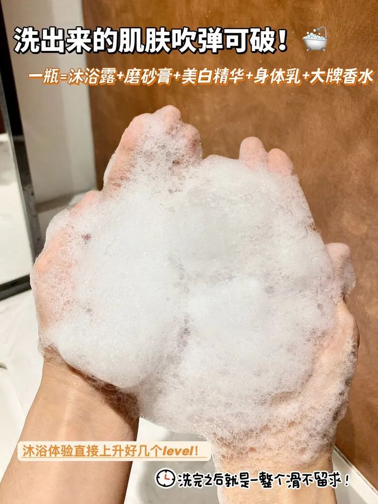 它的质地很浓稠,像奶油一样细腻软糯。冲洗的时候也非常省事,基本一遍就能冲干净,不假滑真的很优秀。