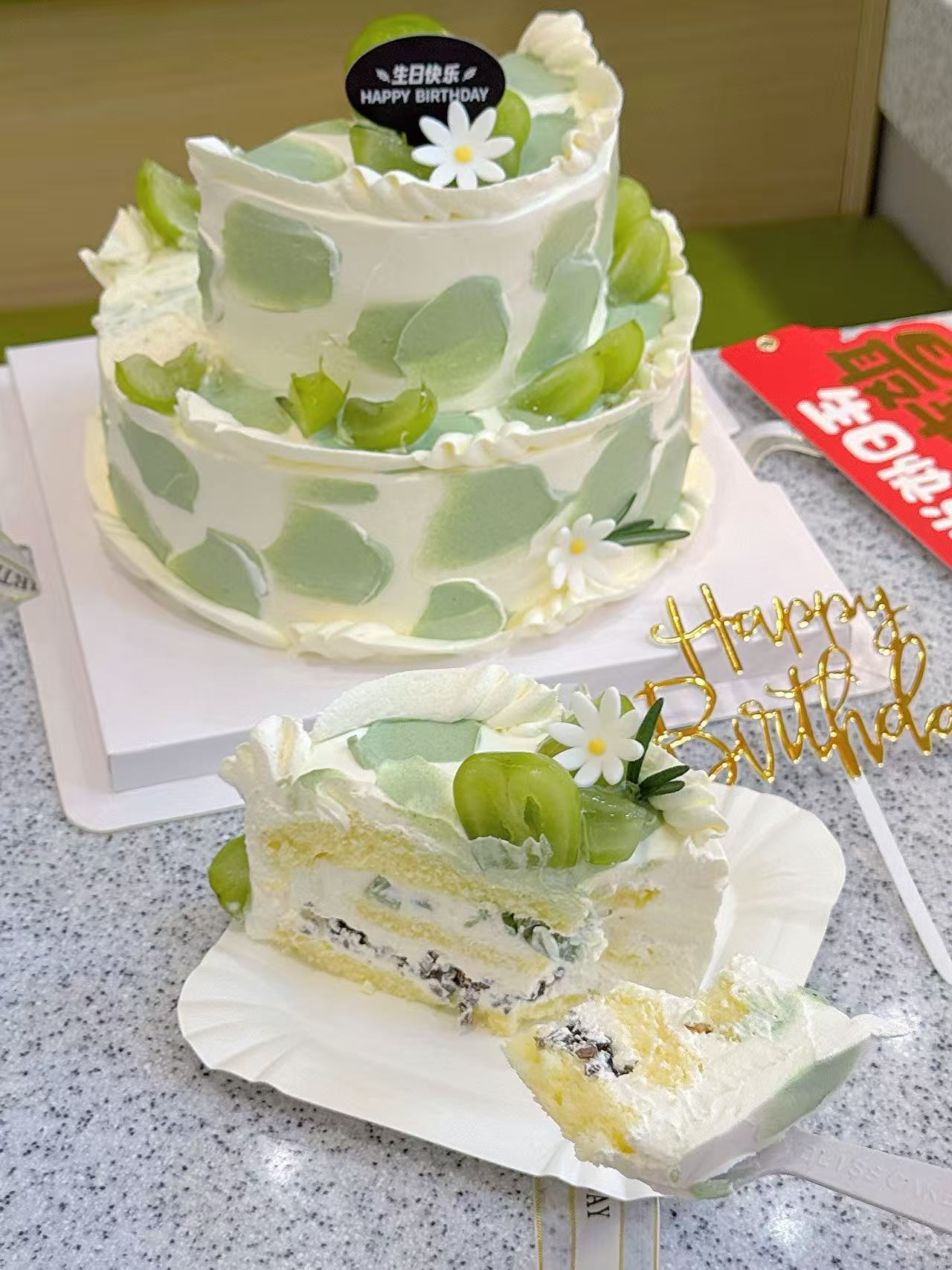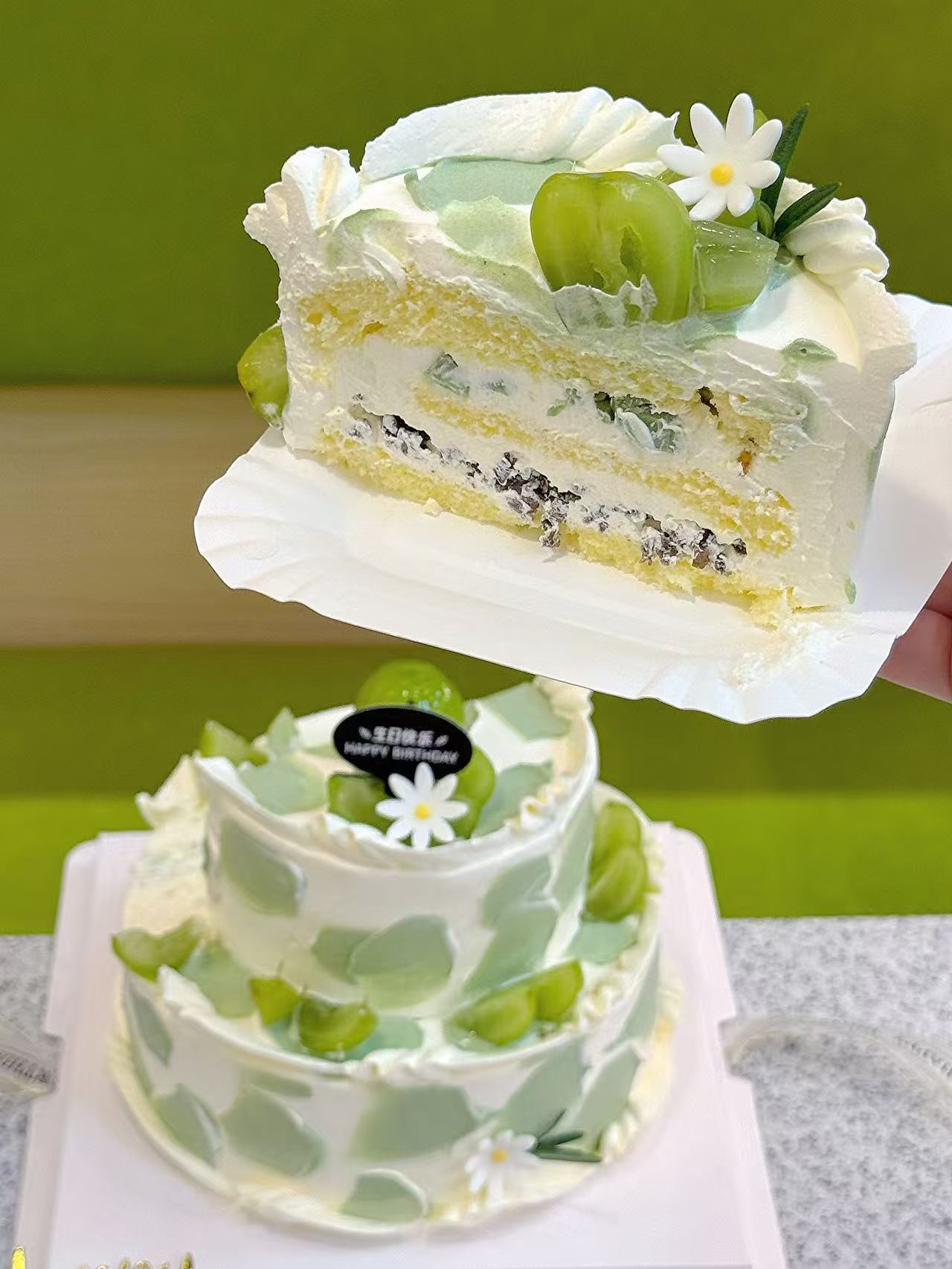 青韵抹茶双层暴击!这蛋糕拍出来像幅水墨画🍵🎋