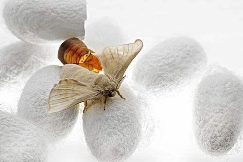 约十天后,羽化成为蚕蛾,破茧而出。