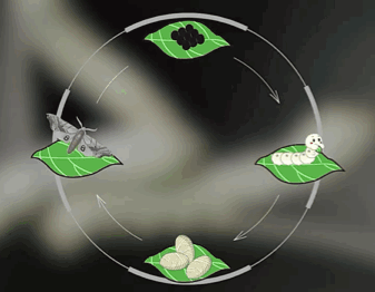 脱一次皮就算增加一岁,共要脱皮四次,成为五龄幼虫才开始吐丝,准备结茧。