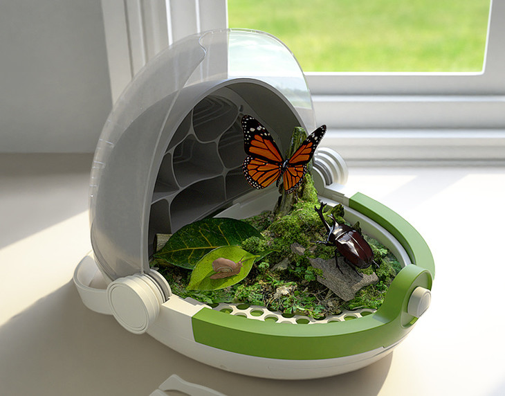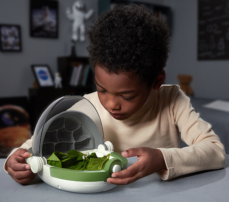 它不仅是蚕的养殖舱,还能养殖别的小动物,比如:甲虫、蜗牛、蝴蝶、蛾、蜂类、蝇和蜻蜓类等。
