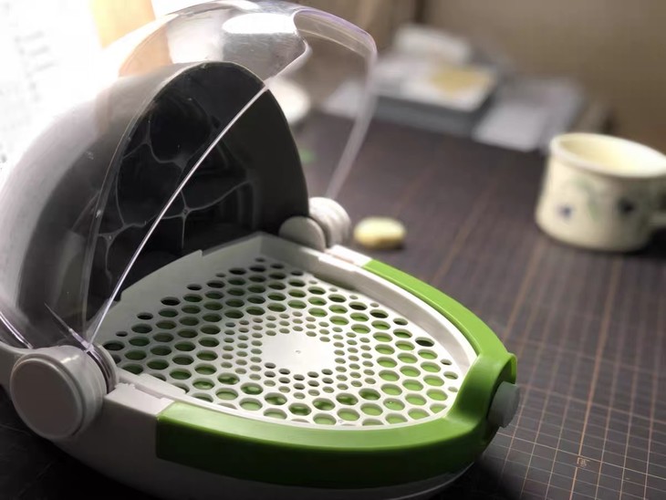 太空养育仓贴合蚕宝宝的生活习性设计,顶部设置多个呼吸孔洞,保证养育舱内空气流动,让蚕宝宝在温暖,空气流动的环境下安心生长。