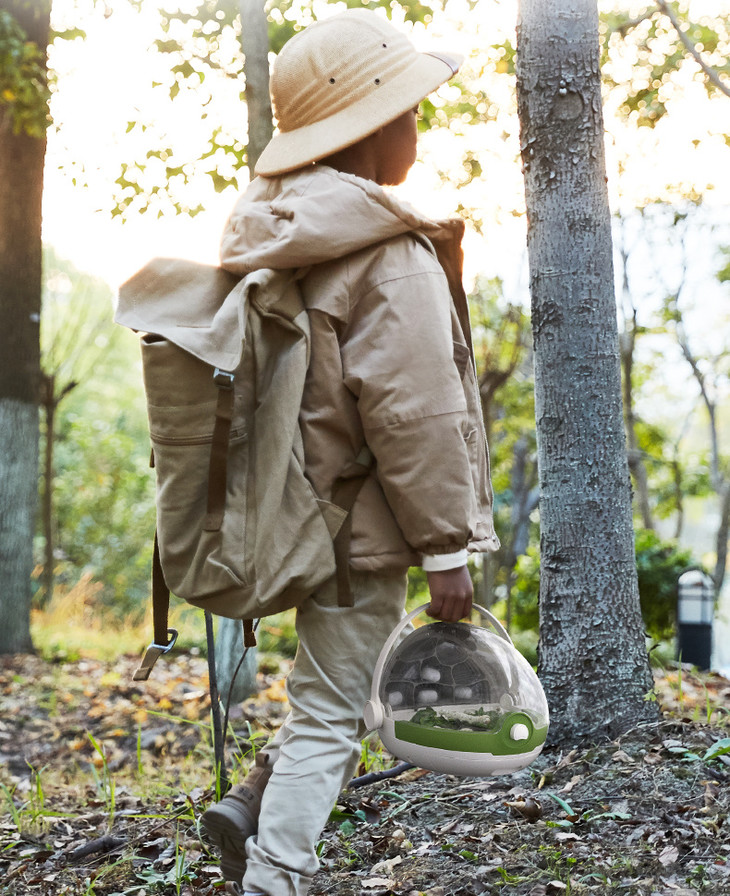 养殖箱小巧轻量,设有一个小小的提手,方便孩子们去户外探索。