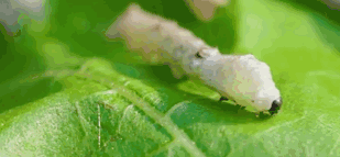 蚕以桑叶为生,不断吃桑叶后身体变成白色,一段时间后她便开始脱皮。