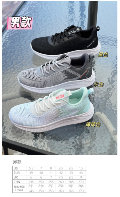 3、舒适不挤脚:双层高弹纱飞织鞋面,弹性优于普通飞织,高脚背、胖脚掌,都能感受到舒适稳定的包裹感。