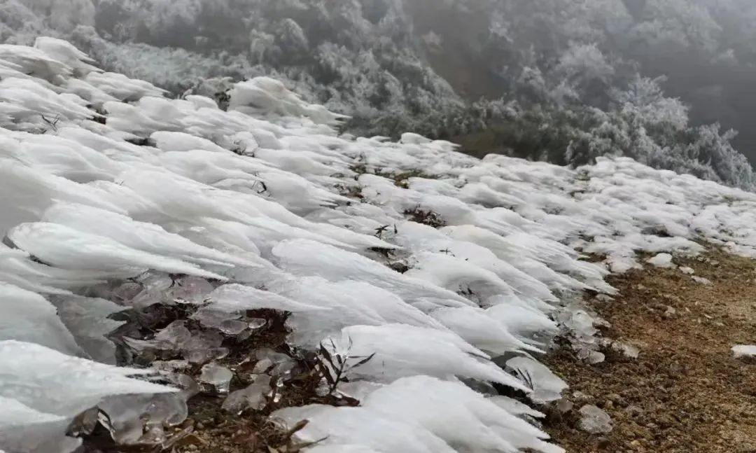 日出云海大雾冰花,一句“魔幻”不足形容!纵然冰天雪地里饥寒交迫,我依然激动得边走边拍边哇哇乱叫,甩起登山杖360°转体,周遭树枝上细碎的冰凌子便簌簌落下来,在地上一层层积着,踩上去嘎吱作响,让人恍惚回到了当年东北雪乡徒步。