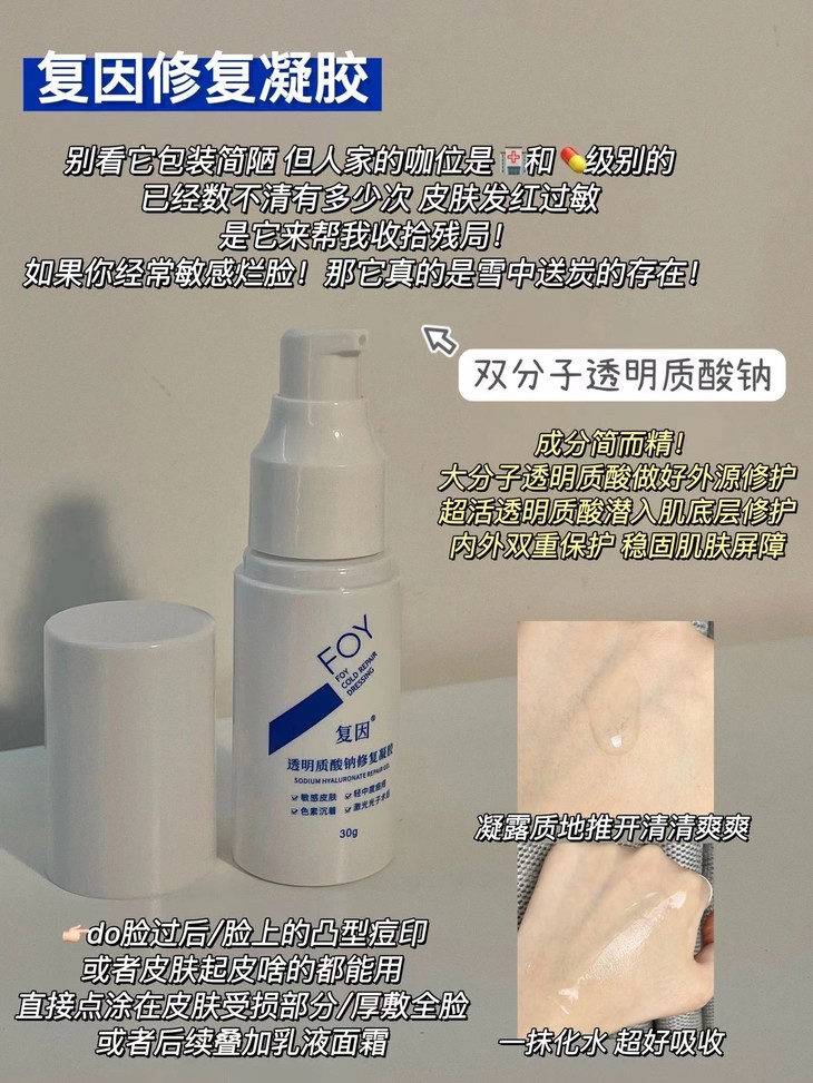 ▫️烂脸修护:复因修复凝胶+复因透明质酸钠修复贴