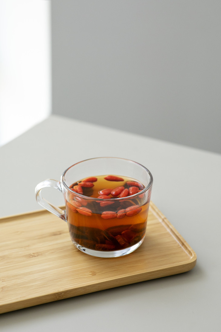 冲泡后,汤色自然黄色,无杂质,伴有“浑浊感”,是牛蒡根的植物纤维自然析出现象。(若介意者,可以先醒茶:注入温水浸润干茶,并迅速将水倒掉,冲饮牛蒡茶,需静置一会儿,等待植物纤维析出后才能饮用。)