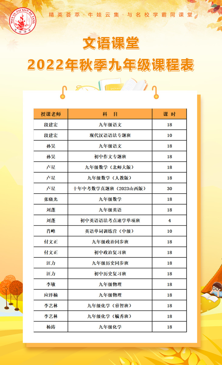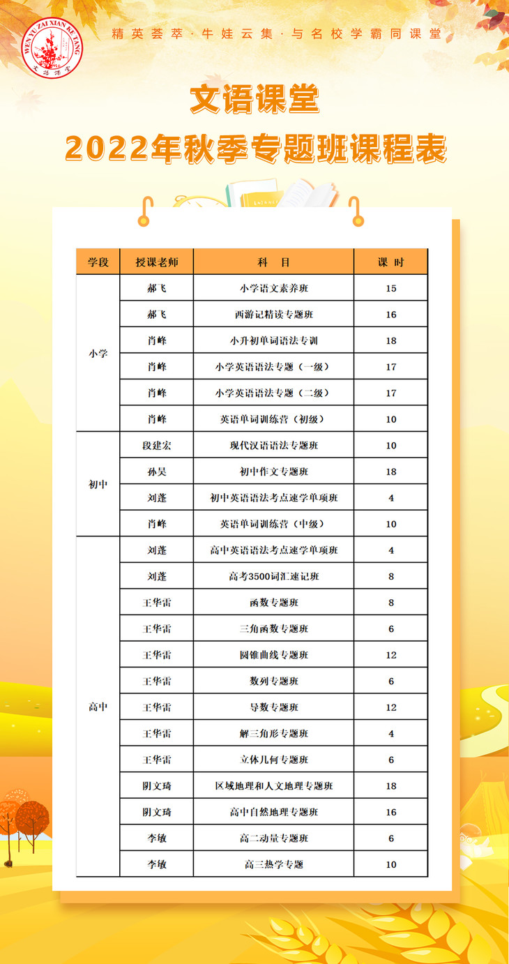 除了听课以外,务必及时完成各项课程任务以确保听课效果。文语课堂秋季课程均配有学情查询系统、学号系统、课后测试系统、答疑系统、积分系统、奖品兑换系统、班主任服务系统等教学效果配套系统,请所有报名学员安排好上课时间。