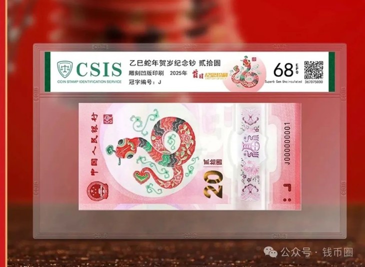 所谓首日评级封装版,即发行初期,对首批的蛇币及蛇钞进行封装入盒。