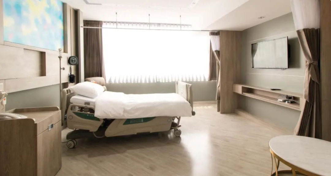 金碧辉煌的灯光,五彩缤纷的喷泉,富丽堂皇的大厅,病房套间的舒适度可媲美豪华酒店。