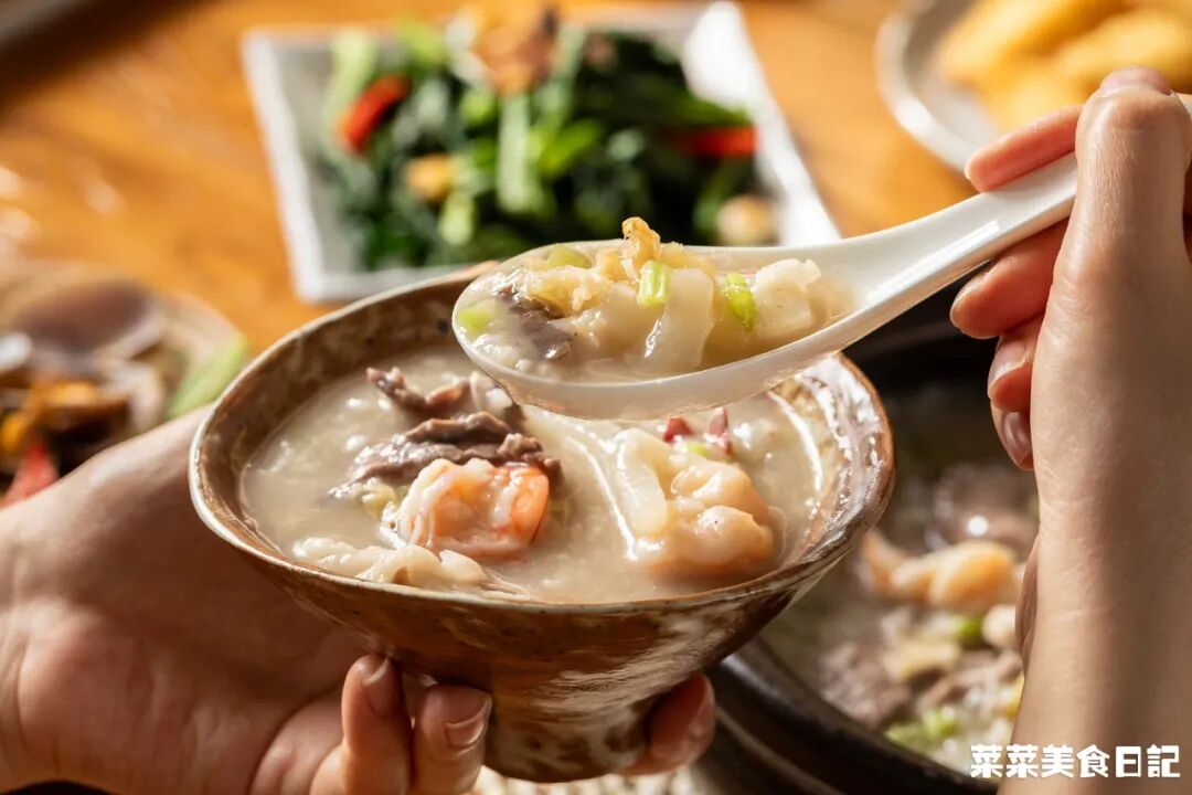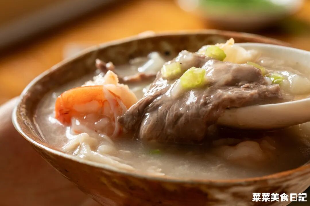 再捞一捞弹牙的虾肉、甜津津的萝卜,吃到额角微微发汗,三日的油腻都被这粥涤荡干净!