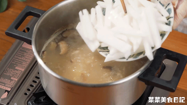 5.萝卜去皮切粗条,香菇切丝
