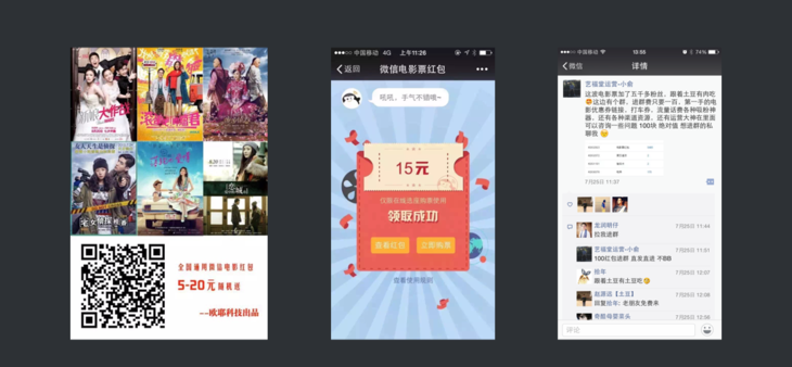 之前商户群里玩的比较好的就是利用微信电影票的方式增粉,原理很简单,就是将免费领取电影票优惠券的链接,做成一个带参数二维码,扫码后可首先提示关注,然后会得到一张电影票的优惠券,小商户都能玩得起的增粉游戏,只要传播的好,几千粉丝轻松搞定哦。