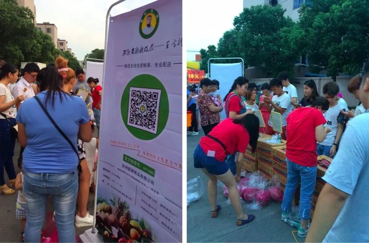 2、活动爆款的推出。每次地推会挑选一个水果单品来做活动,用参数二维码做扫码低价抢购(打标签),类似于线上的活动引流款,更能吸引眼球,吸引粉丝。
