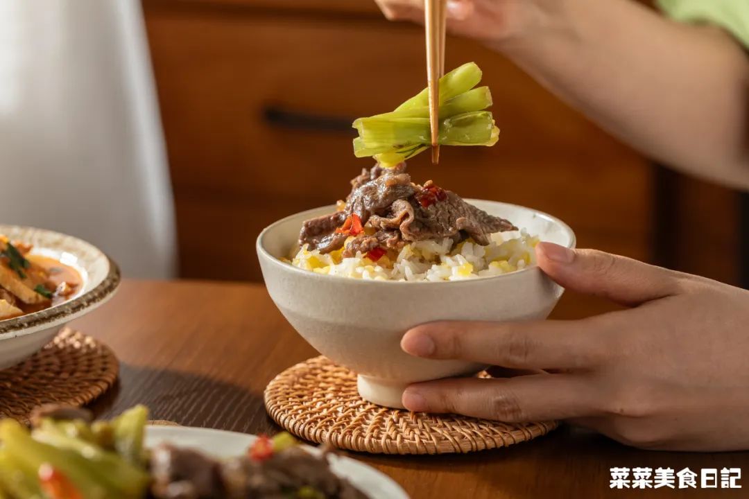 3.起锅热油比日常多一点油,加入牛肉大火翻炒至微微变色,7成熟捞出待用