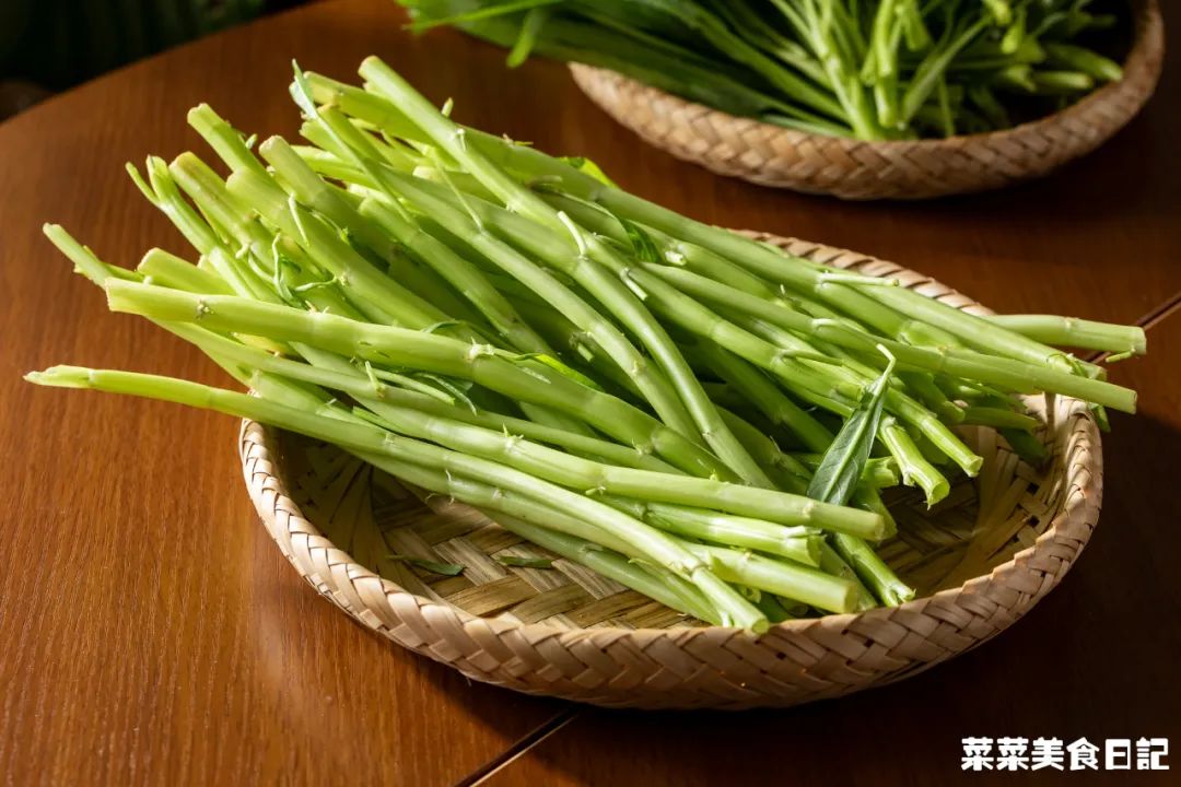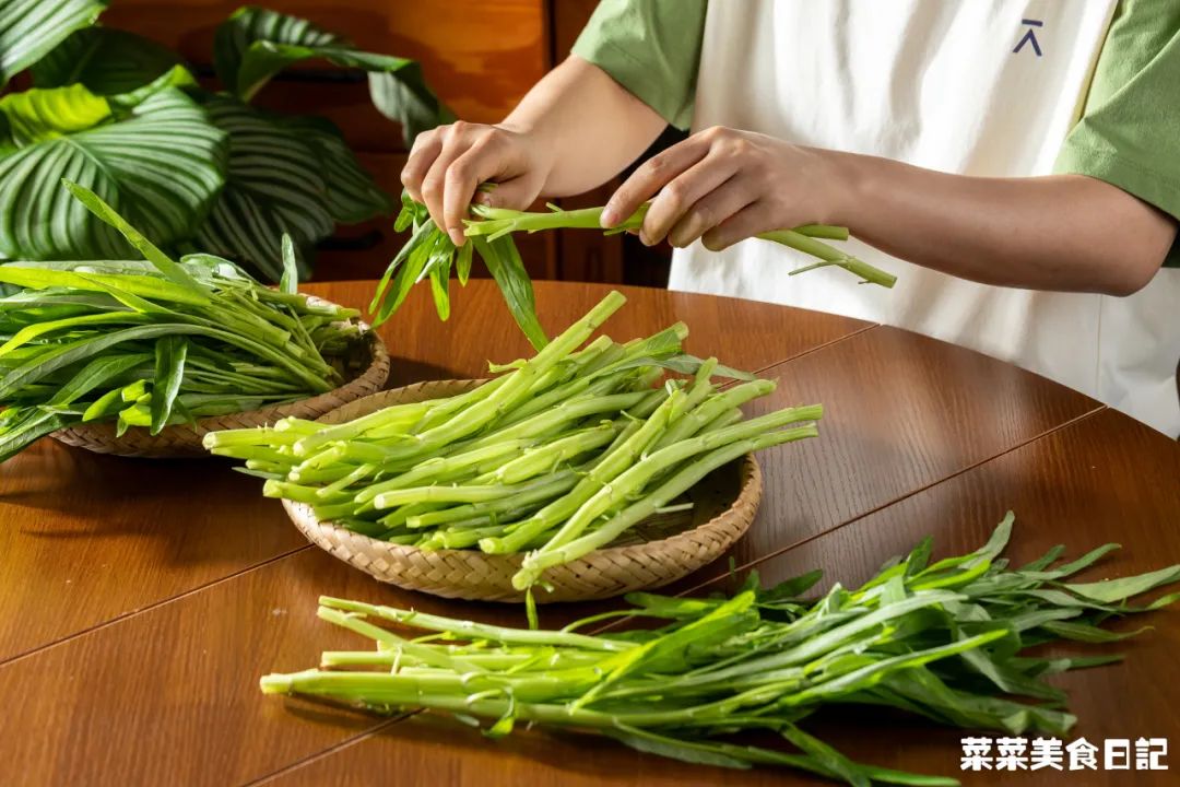 2.空心菜洗净,切头,拍一拍切段,拍一拍更好入味