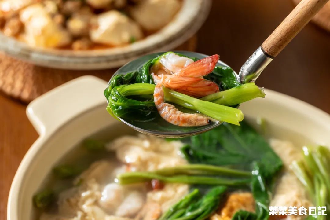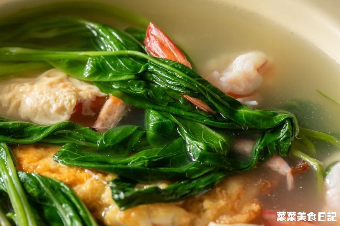 空心叶200g 鸡蛋3个 鲜虾200g 姜片2片 虾皮1/2小勺 干贝4颗 盐1/2小勺 胡椒粉1/4小勺