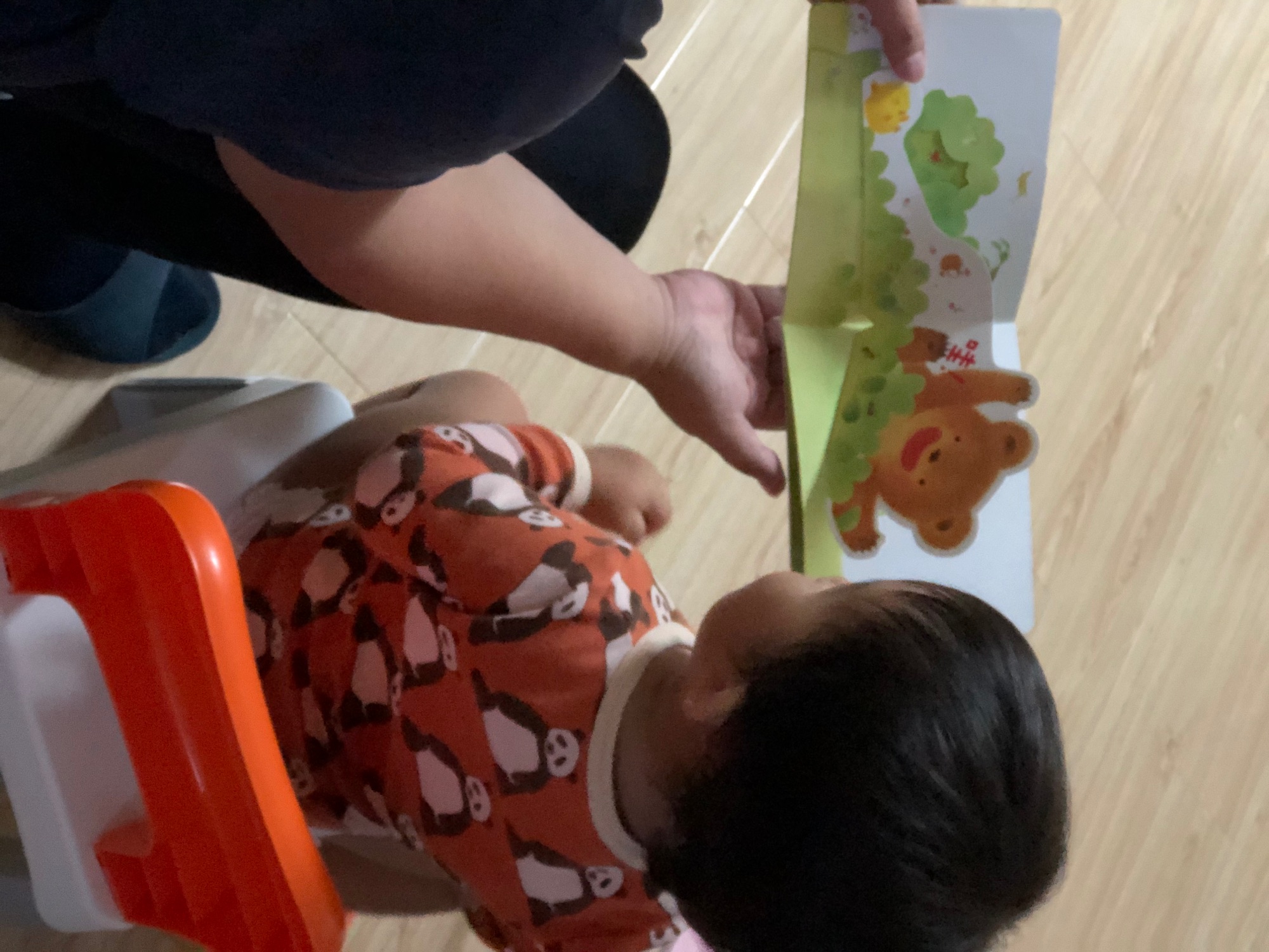3.当读到下雨的时候,我说它们没有伞,语气稍有一点悲伤,宝宝的表情会随着我的语言产生变化,原来她真的听懂啦!