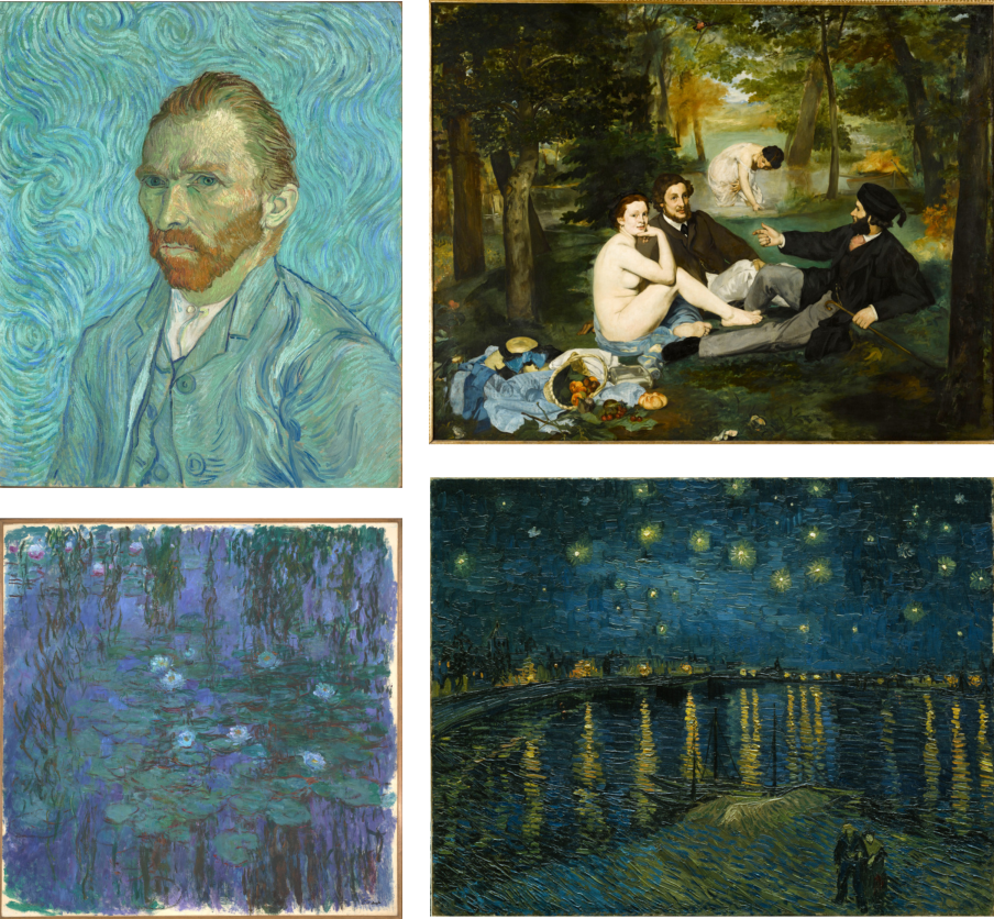 奥赛博物馆是巴黎乃至全球艺术界的重要坐标,拥有全世界最完整的的印象派艺术收藏。馆藏有莫奈、梵高、塞尚、雷诺阿、马奈和德加等印象派及后印象派等巨擘的重要作品,如莫奈《睡莲》《鲁昂大教堂》系列、梵高《自画像》《罗纳河上的星夜》、马奈《草地上的午餐》、塞尚《玩纸牌的人》雷诺阿《煎饼磨坊的舞会》等,以及雕塑大师罗丹的《地狱之门》《青铜时代》等标志性巨作。