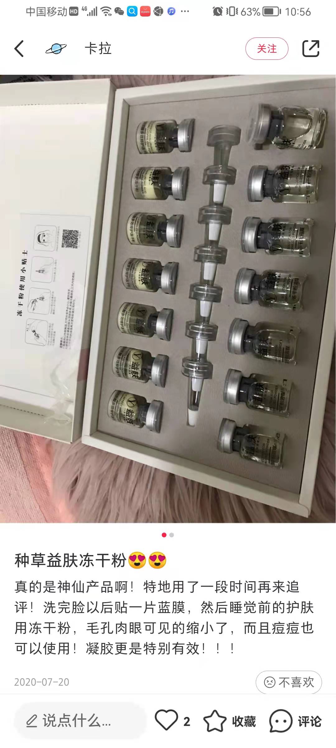 益肤医美顾问:益肤冻干粉是联合中国药科大学共同研制,基于临床医学的细胞学级科研成果。蕴含保湿修护因子,独特的微米渗透技术,可以帮助营养成分直达肌肤深层,持续滋养修护,增加肌肤弹性,令肌肤紧致细腻,由内而外散发光彩。
