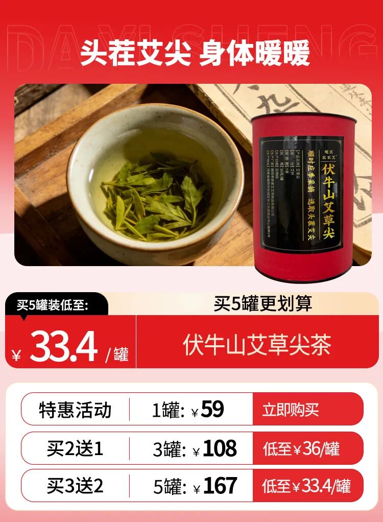 所以这次我们特别找到了一款伏牛山艾草尖茶,它以艾草道地产区——張仲景故乡南阳的当季头茬艾草尖为原料,多道筛选、低温炒制而成。简单冲泡即饮,通过脾胃吸收进入气血循 环,力透全身,比艾灸更温和、范围更广。