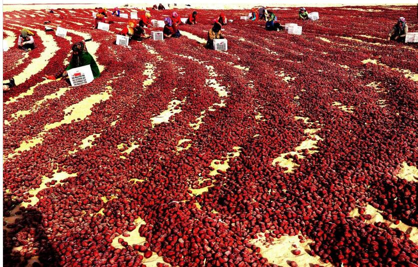 他们常常顶着烈日在田地里劳作,采摘新疆的大枣。一天大约100多斤,全部手工采摘,收入也就100多元钱,但是对于他们来说改变生活经济就是最大的成就不觉得辛苦。