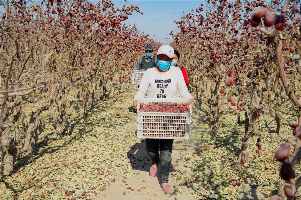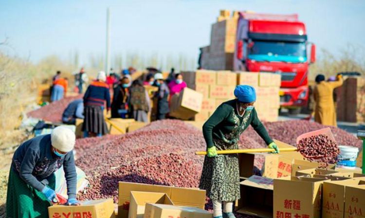 大枣丰收之后,为了进一步提高大枣的品相,枣农会根据大小品质进行分拣。分拣完毕,最后收购商装车发完货,他们的才会掸去身上的灰尘喜笑颜开。