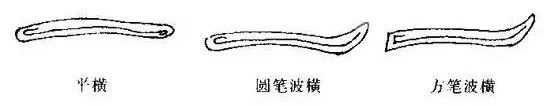 1.平横。是指横呈水平状,一般逆锋起笔,折笔中锋运行,回锋收笔或露锋收笔。平横有凸形、凹形和基本平形。