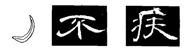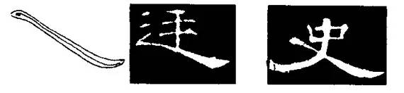 这是一种将左旁竖画进行艺术美化的做法。起笔如竖,行至一半,向左上弯行,至末端向上微挑旋即回锋收结。