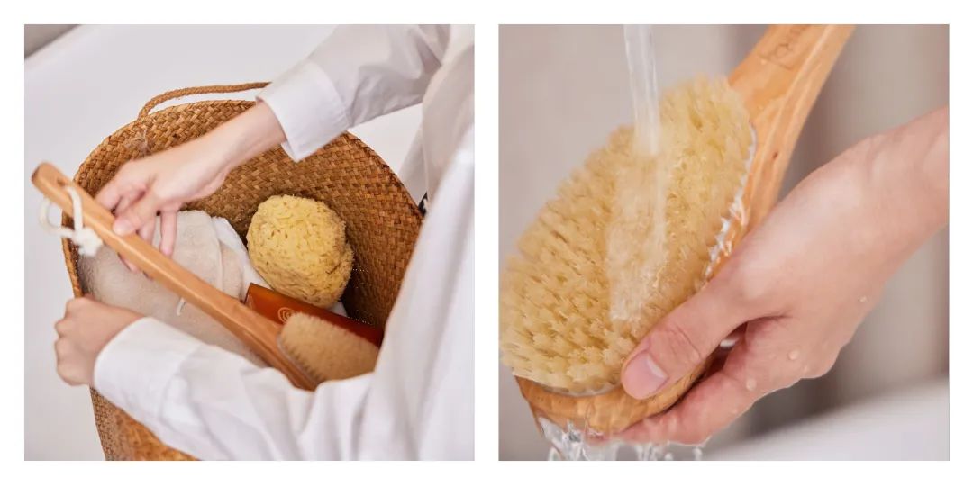 它家的猪鬃毛长柄浴刷,也强烈建议大家备上。猪鬃毛遇水后会变柔软,韧劲会keep住、但不会扎到皮肤;再加上木长柄的设计(耐用且不易发霉),不仅方便清洗背部、脚板底、手肘等区域,打圈按摩还能缓解鸡皮、色素沉淀、角质多等肌肤问题。
