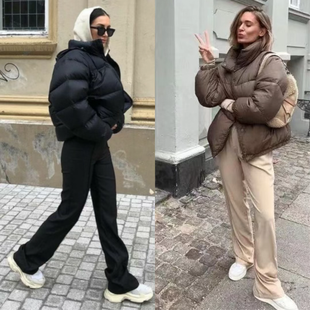 但其实蓬松的羽绒服只要搭配好,反而是第一眼的
