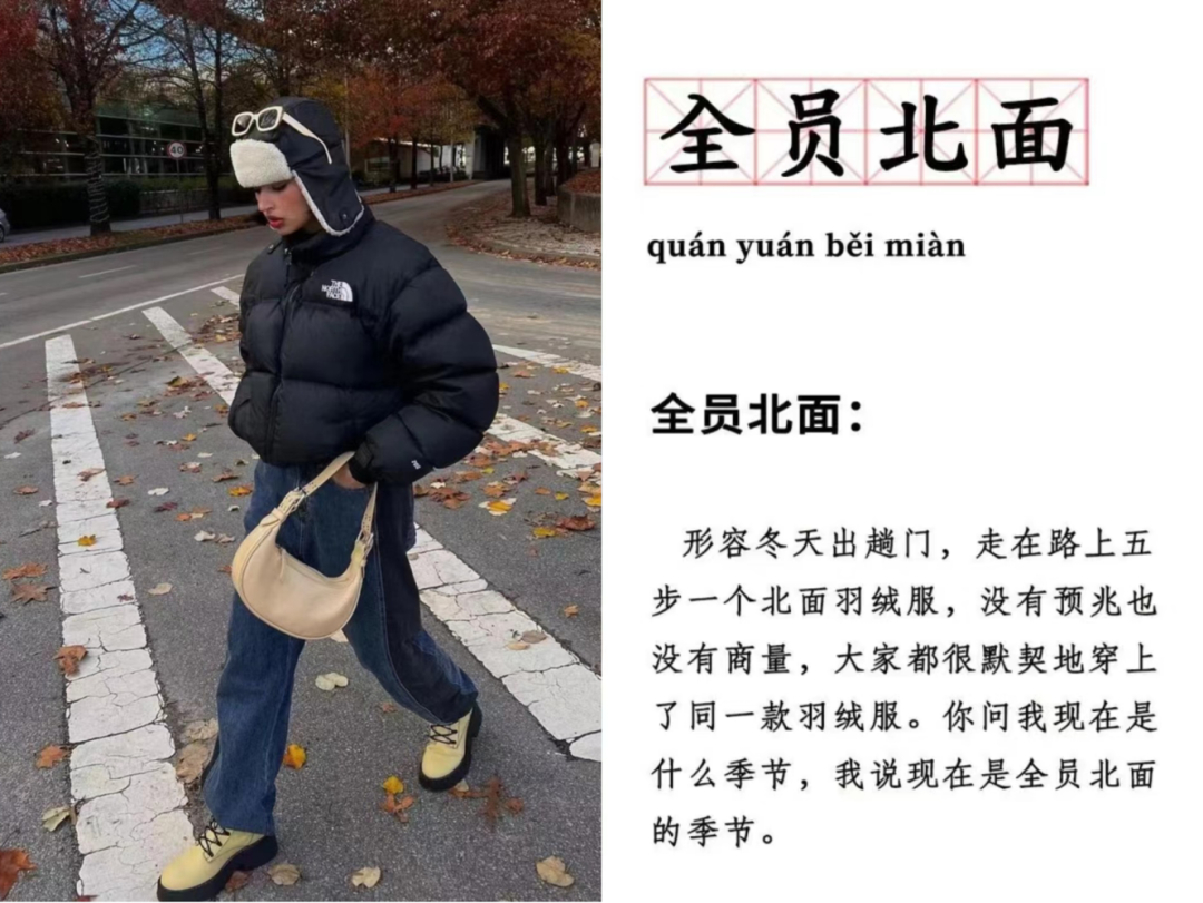 北面羽绒服。