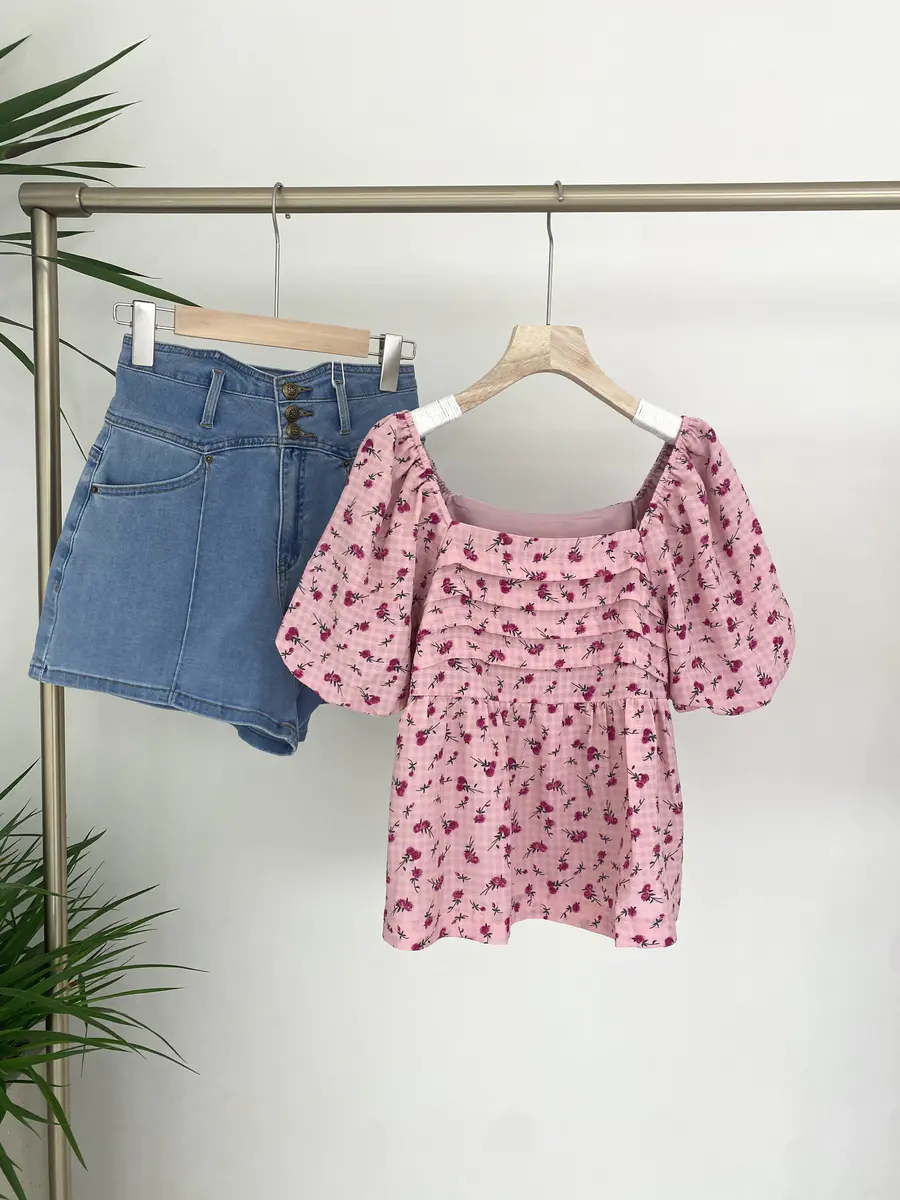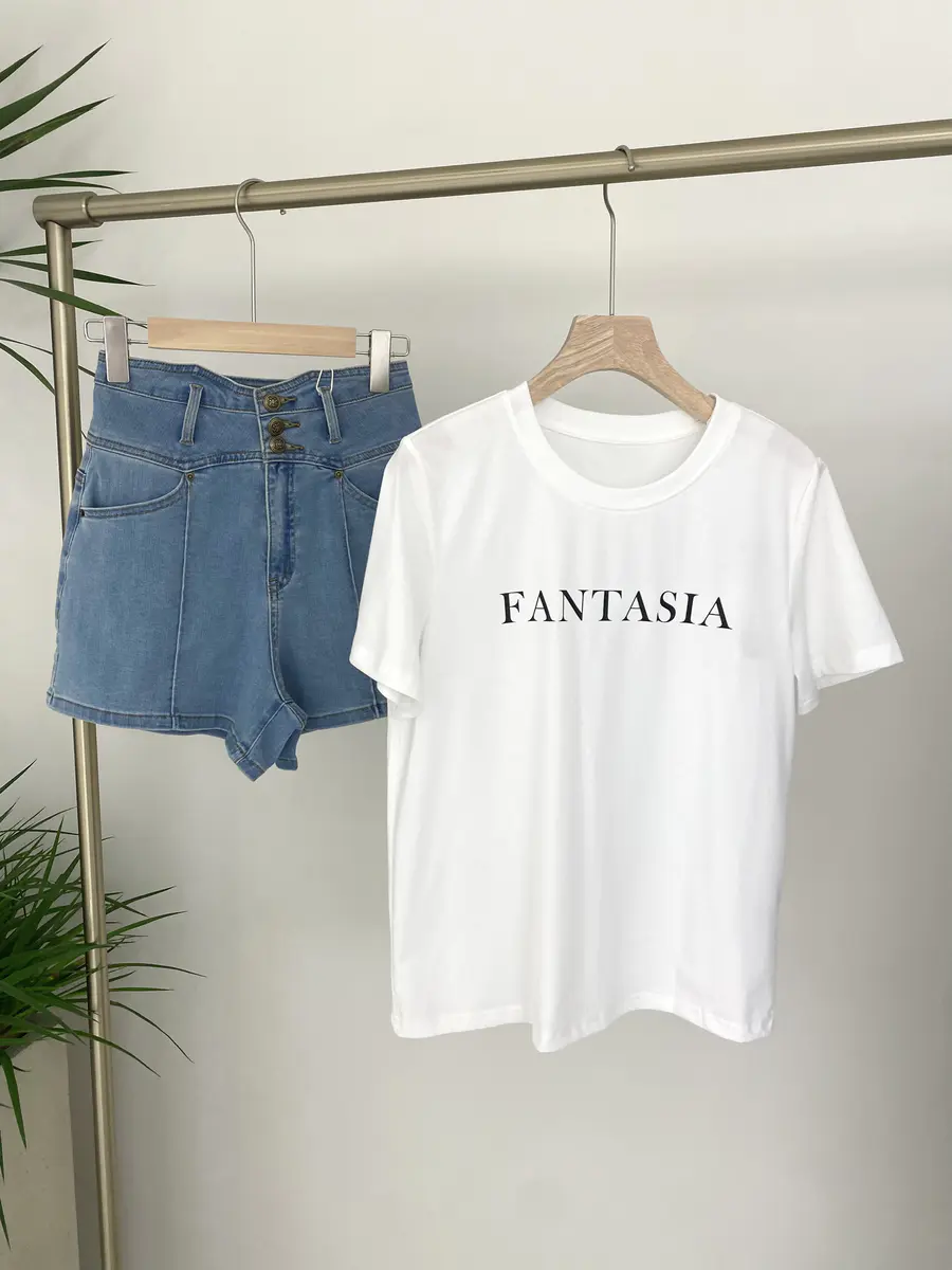 这条短裤的饱和度不算高,介于浅蓝与经典丹宁之间,所以搭配亮色或者浅色系单品非常合适,会给人更加清新的感觉