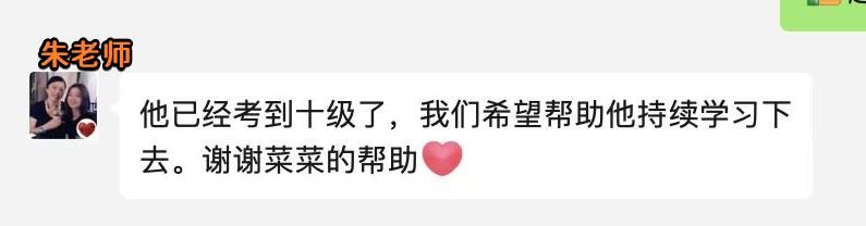 这里必须提一提坚持患自闭症的王宇辉同学,我们从去年7月开始资助钢琴课程费。
