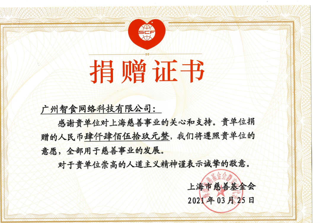 ⑤附上部分捐赠发票及上海市慈善基金会发出的捐赠证书。