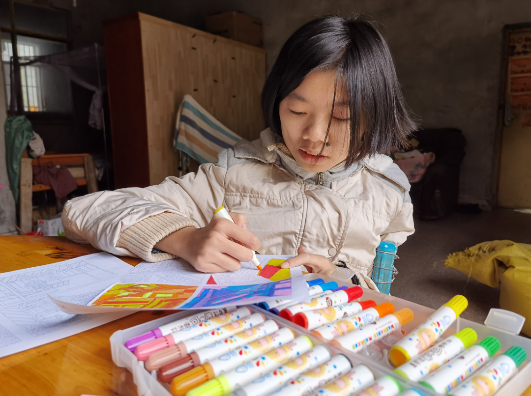 ②2021年7月帮扶吕灵龙、魏玲等家庭,推进疫情后四川汉旺的绘画课堂复课。