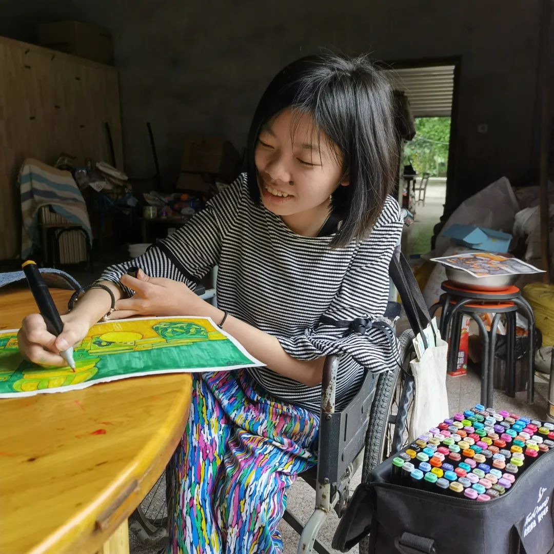 我第一次见她,是她在作画的照片,纤瘦清秀,完全看不出生病的样子。