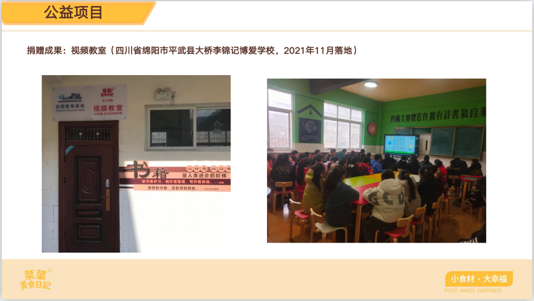 ①2021年12月在四川省绵阳市平武县大桥李锦记博爱学校捐助了远程教育设备