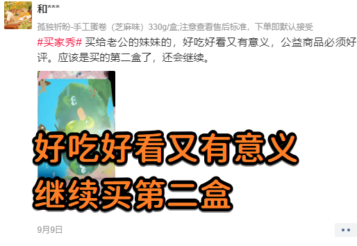 对内,无论食物品质、包装设计、公益理念都得到你们的喜爱和支持!